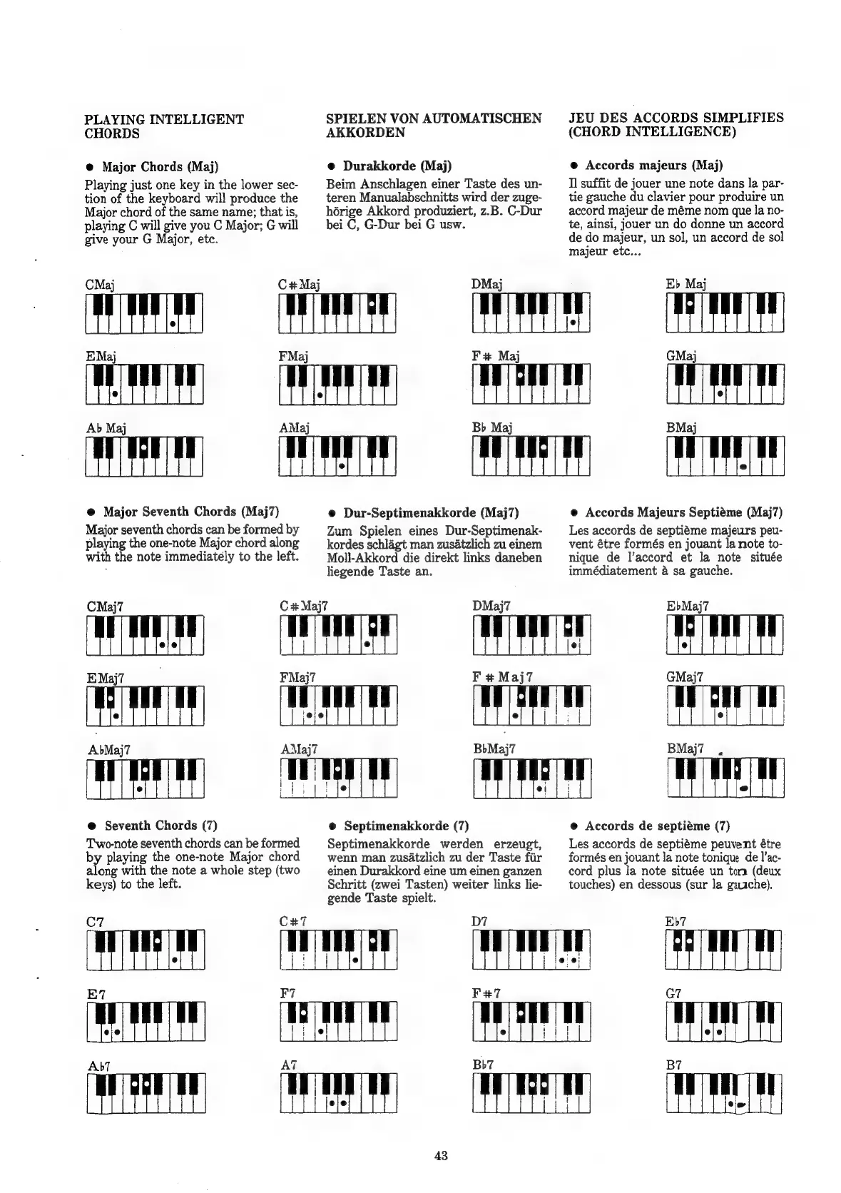 Roland E-35 - Playing Intelligent Chords; Major Chords (Maj); Major Seventh Chords (Maj7); Seventh Chords (7)