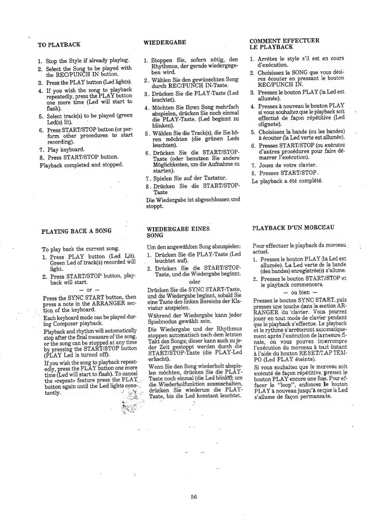 Roland E-35 - To Playback; Playing Back a Song