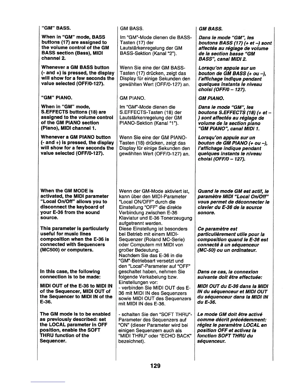 Roland E-36 - GM Bass; GM Piano