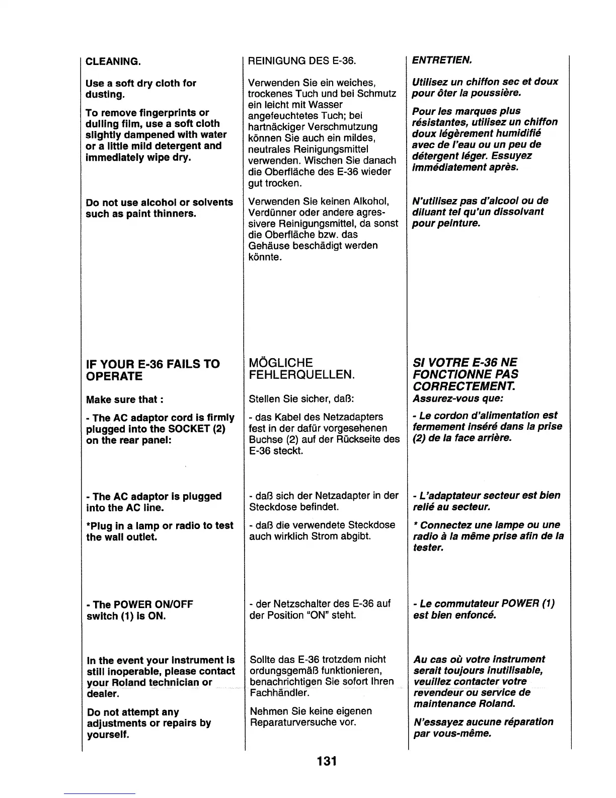 Roland E-36 - Cleaning; If Your E-36 Fails to Operate