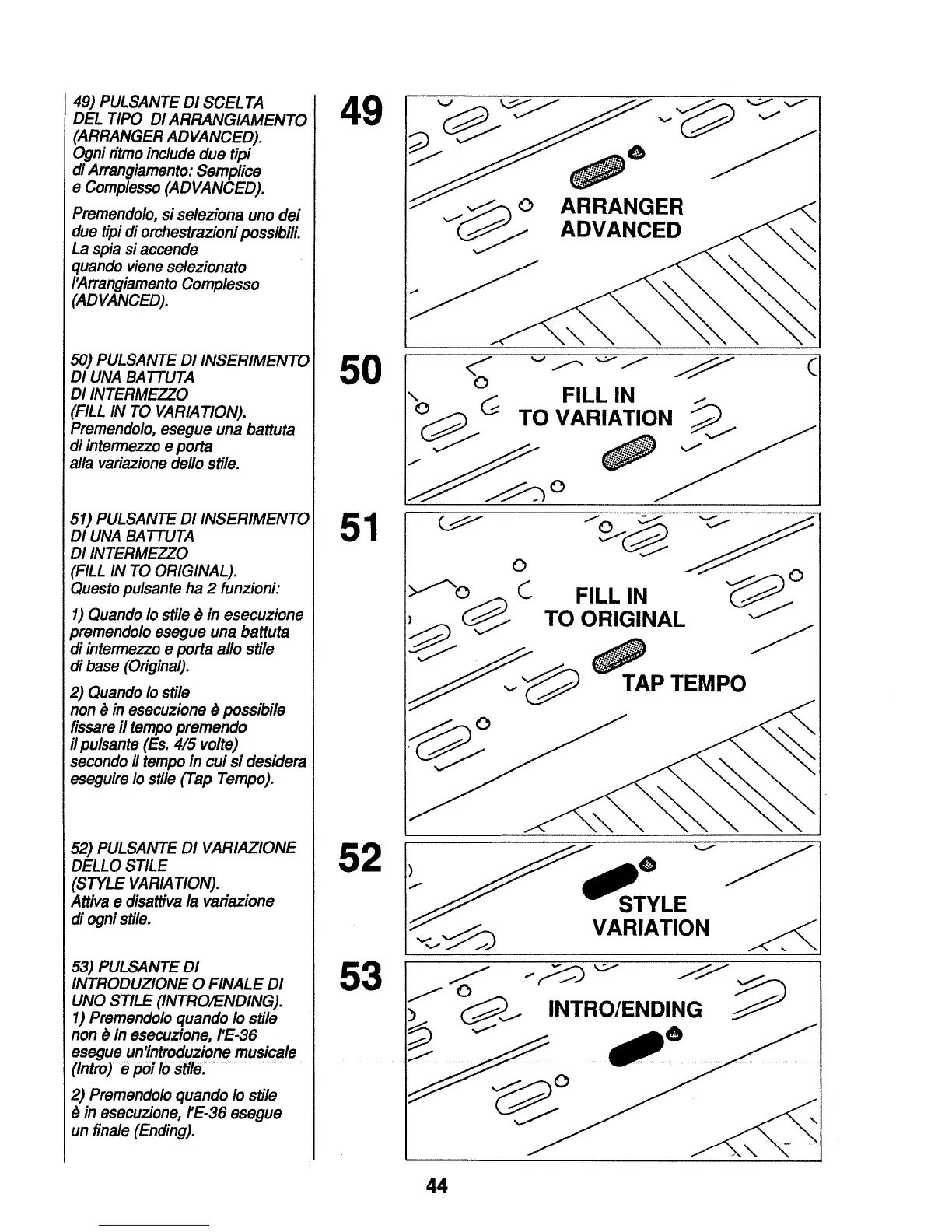 Roland E-36 - Arrangement and Style Controls; Arranger Selection and Fill-ins; Style Variation and Intro;Ending