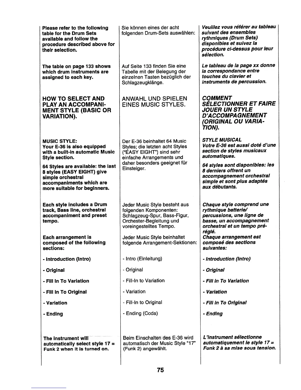 Roland E-36 - Accompaniment Style Selection; Selecting and Playing Styles