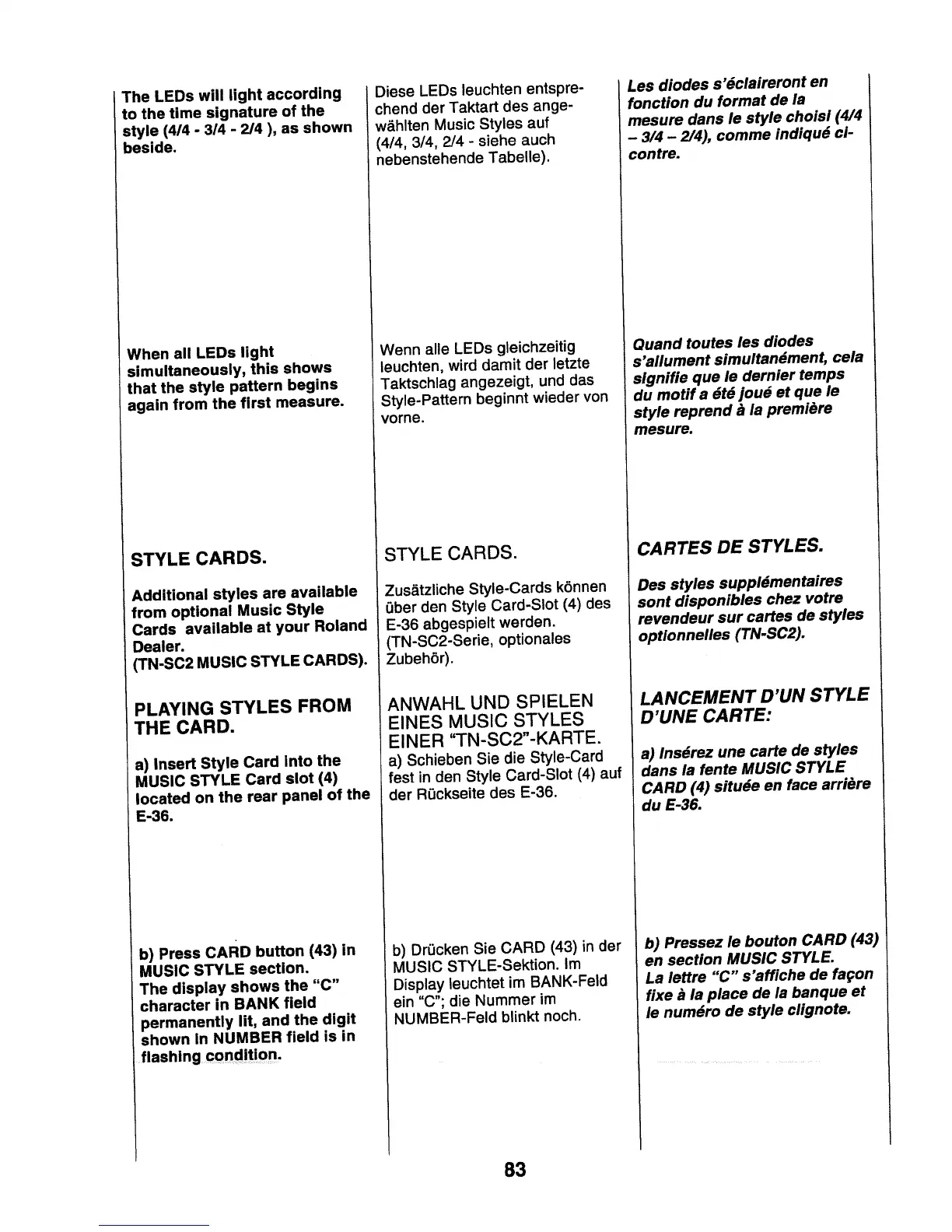 Roland E-36 - Style Cards; Playing Styles from the Card