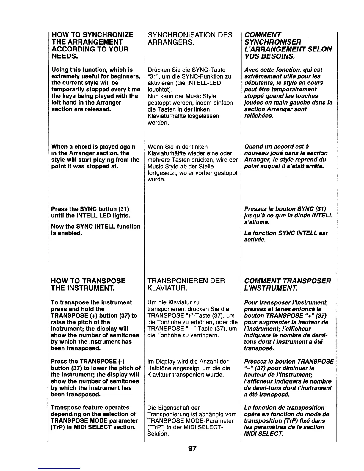 Roland E-36 - How to Synchronize the Arrangement According to Your Needs; How to Transpose the Instrument