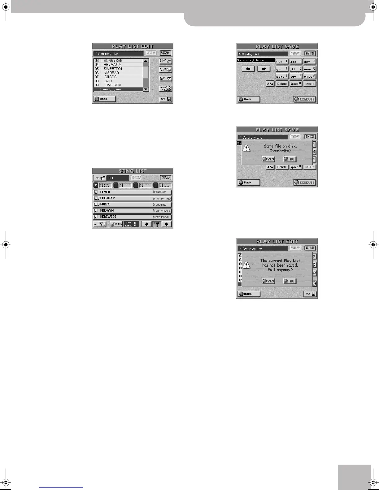 The PLAY LIST EDIT page contains a [CLEAR¥ALL] field