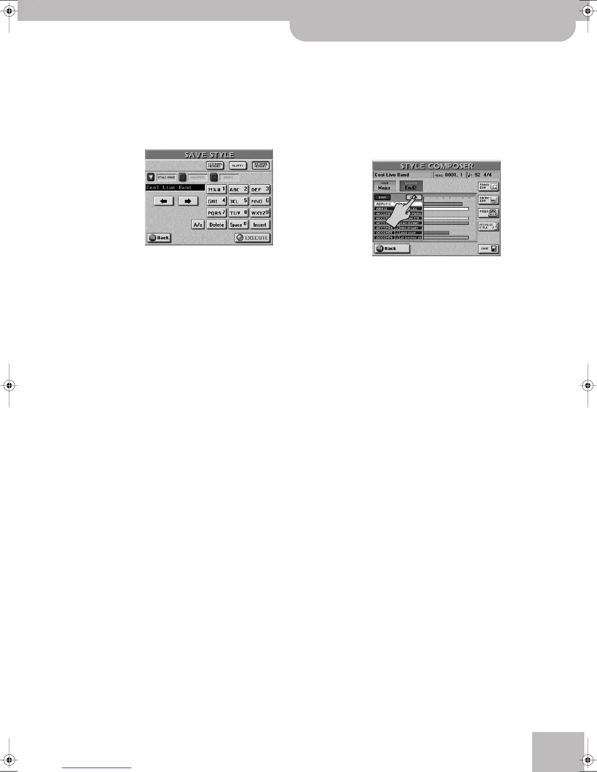 (1) Press the [SAVE] field on the STYLE COMPOSER