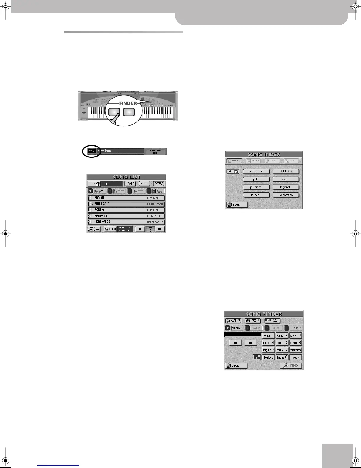 (1) Press the FINDER [SONG] button.