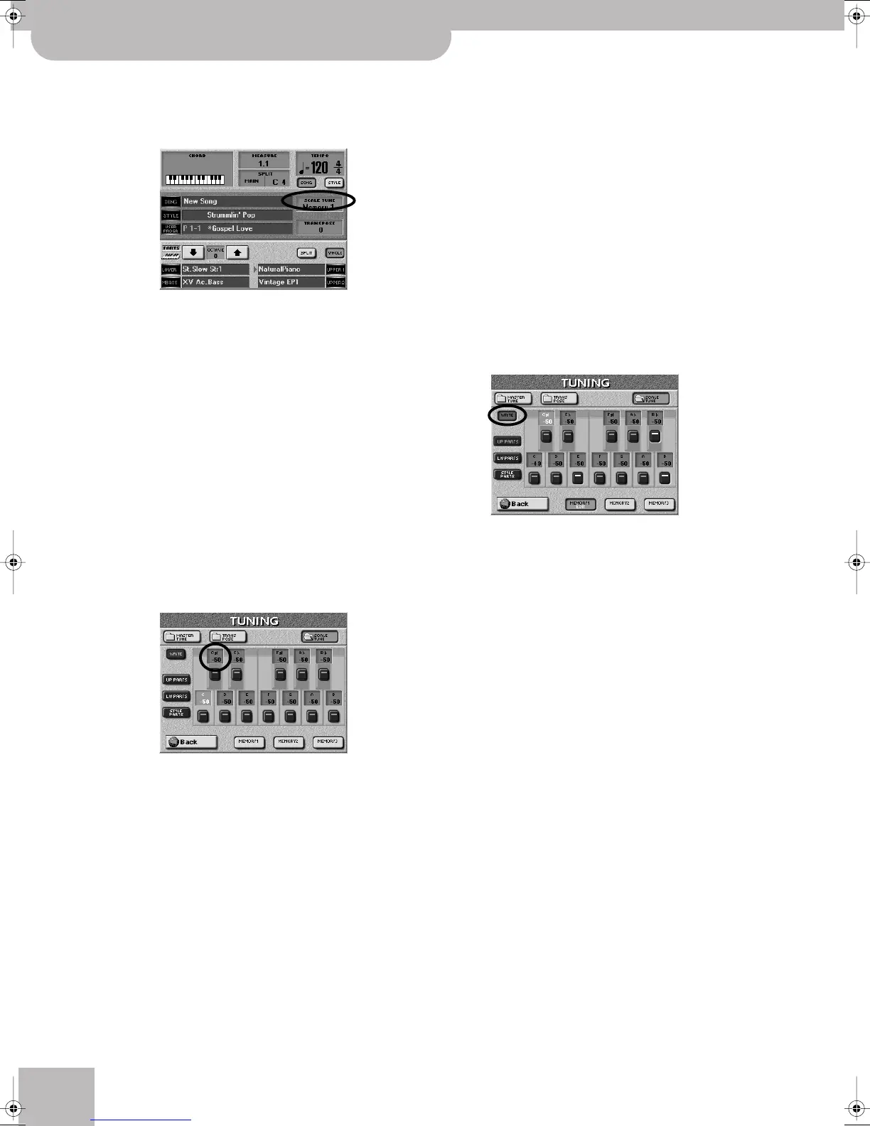 Scale Tune settings: Upper 1/2 and/or Lower. It is