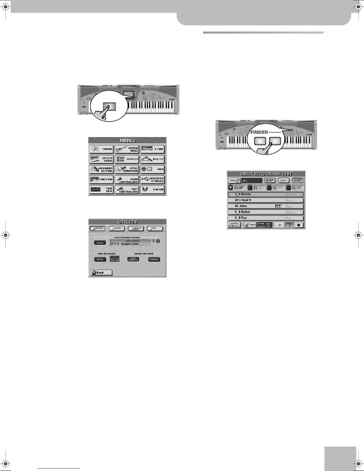 (2) Press the [UTILITY] field, followed by the [STARTUP]