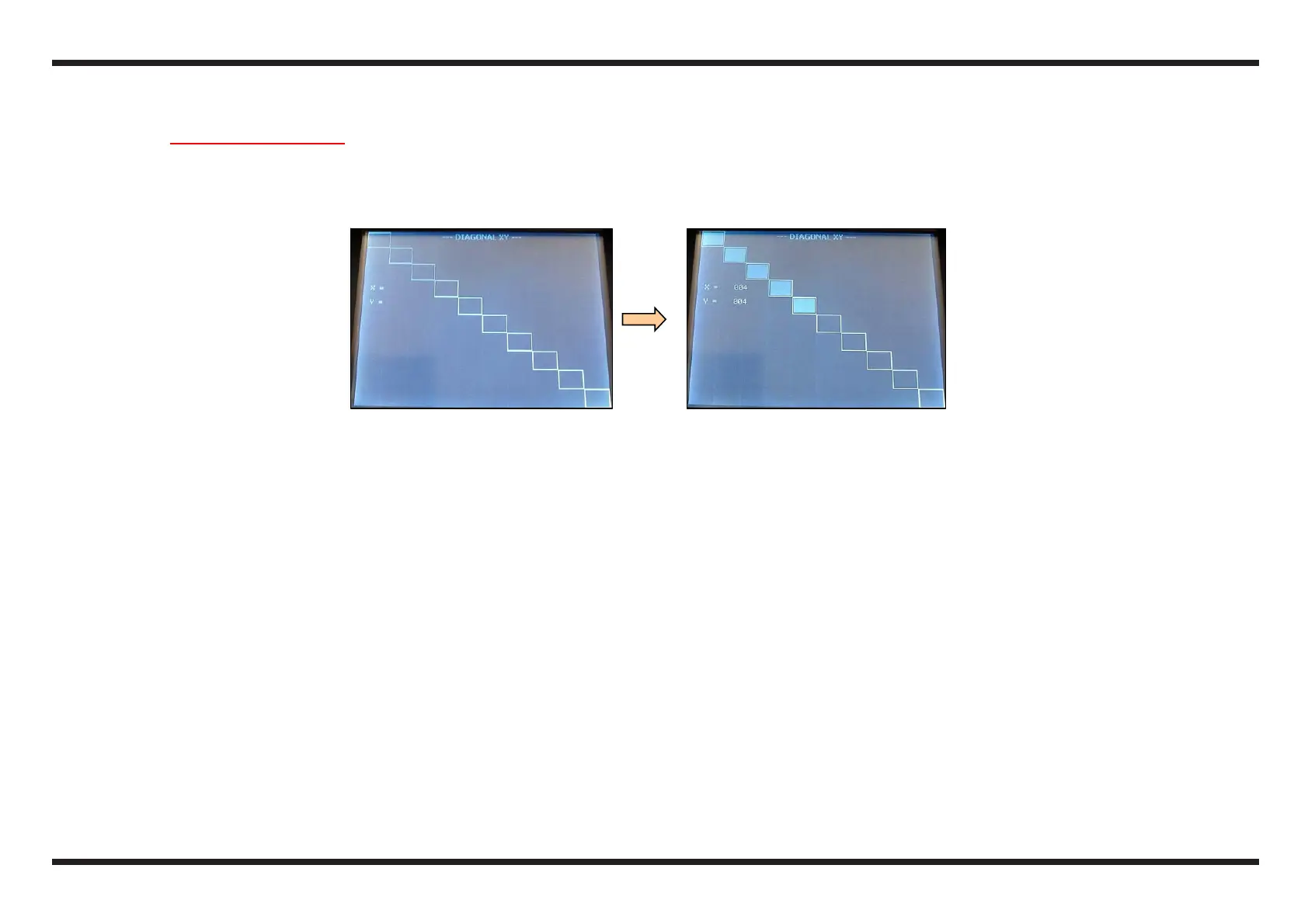 c Using the Touch Screen pen, touch all 10 squares outlined on the display or trace a diagonal line from top to bottom