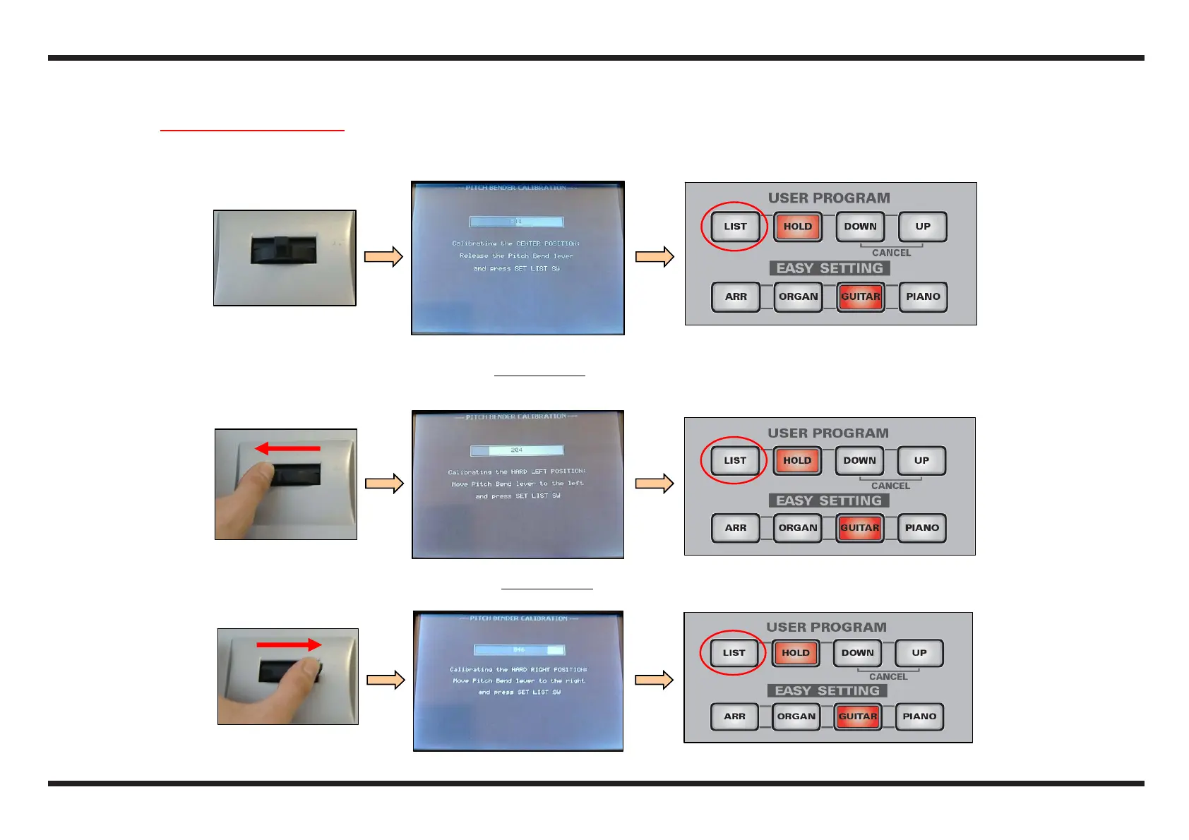 Leave the Pitch Bender lever in the rest position (the bar on the LCD should be coloured in red for about its half)