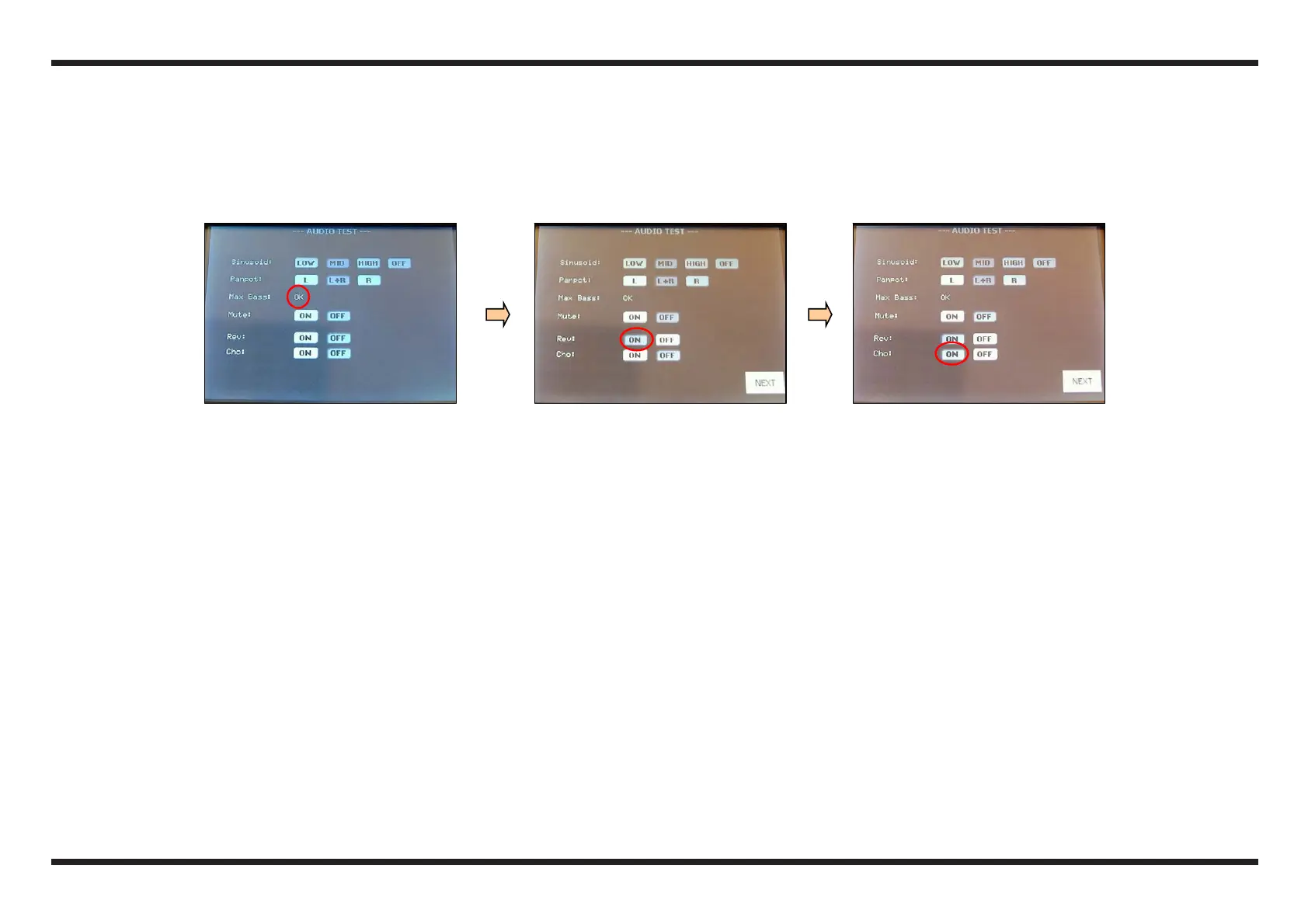 c Check that the Max Bass check has been carried out successfully (OK); in cas of error NG will appear
