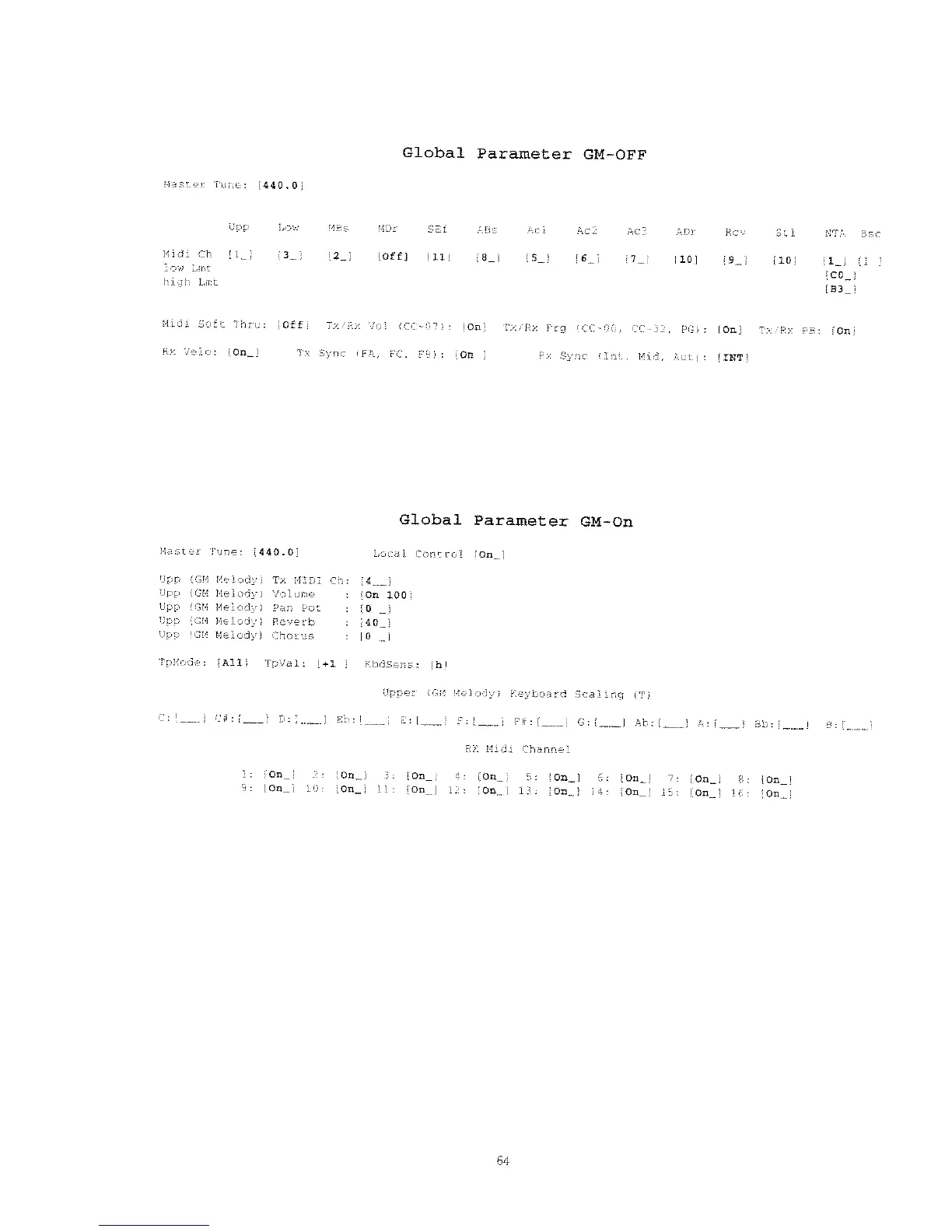 Roland E-56 - Global Parameter GM-Off;On