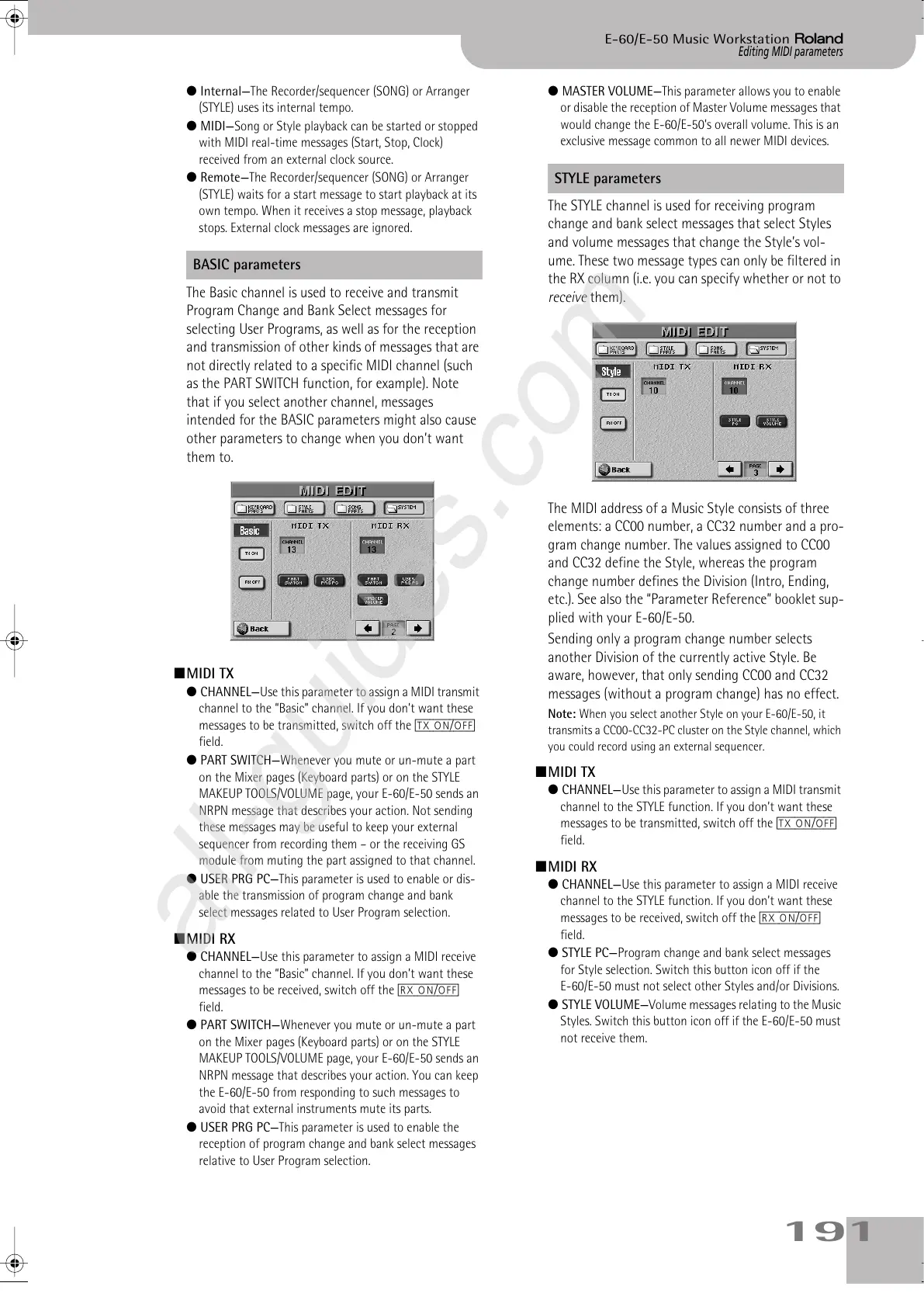 on the Mixer pages (Keyboard parts) or on the STYLE