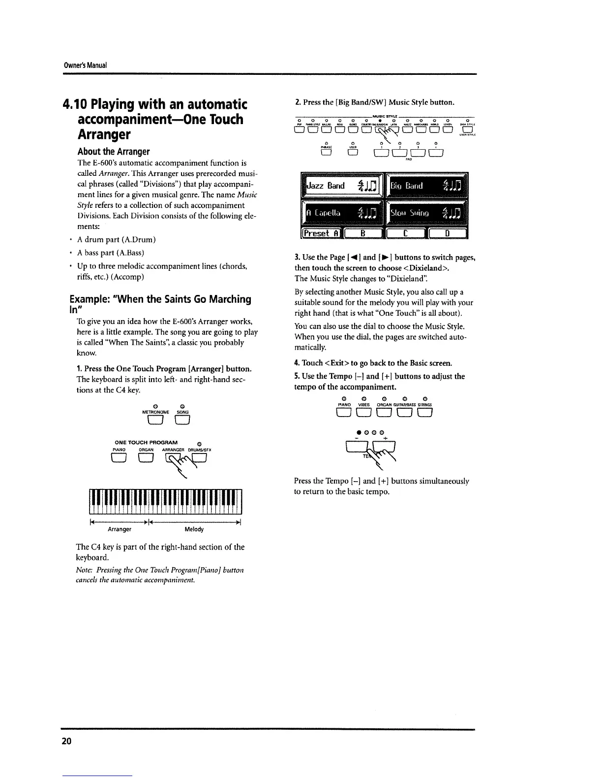 Roland E-600 - Automatic Accompaniment: One Touch Arranger