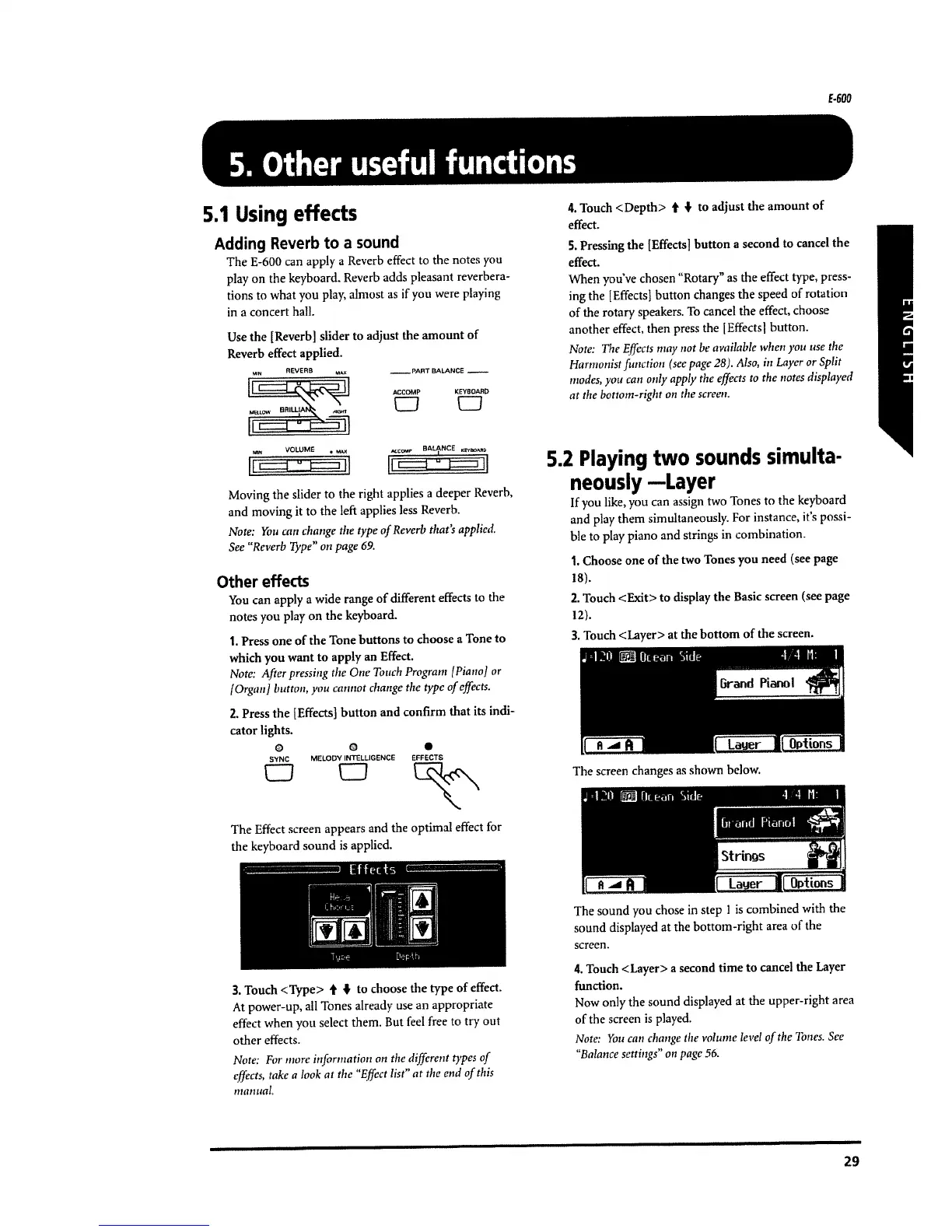 Roland E-600 - Other Useful Functions; Applying Effects to Sounds; Playing Two Sounds Simultaneously (Layer)