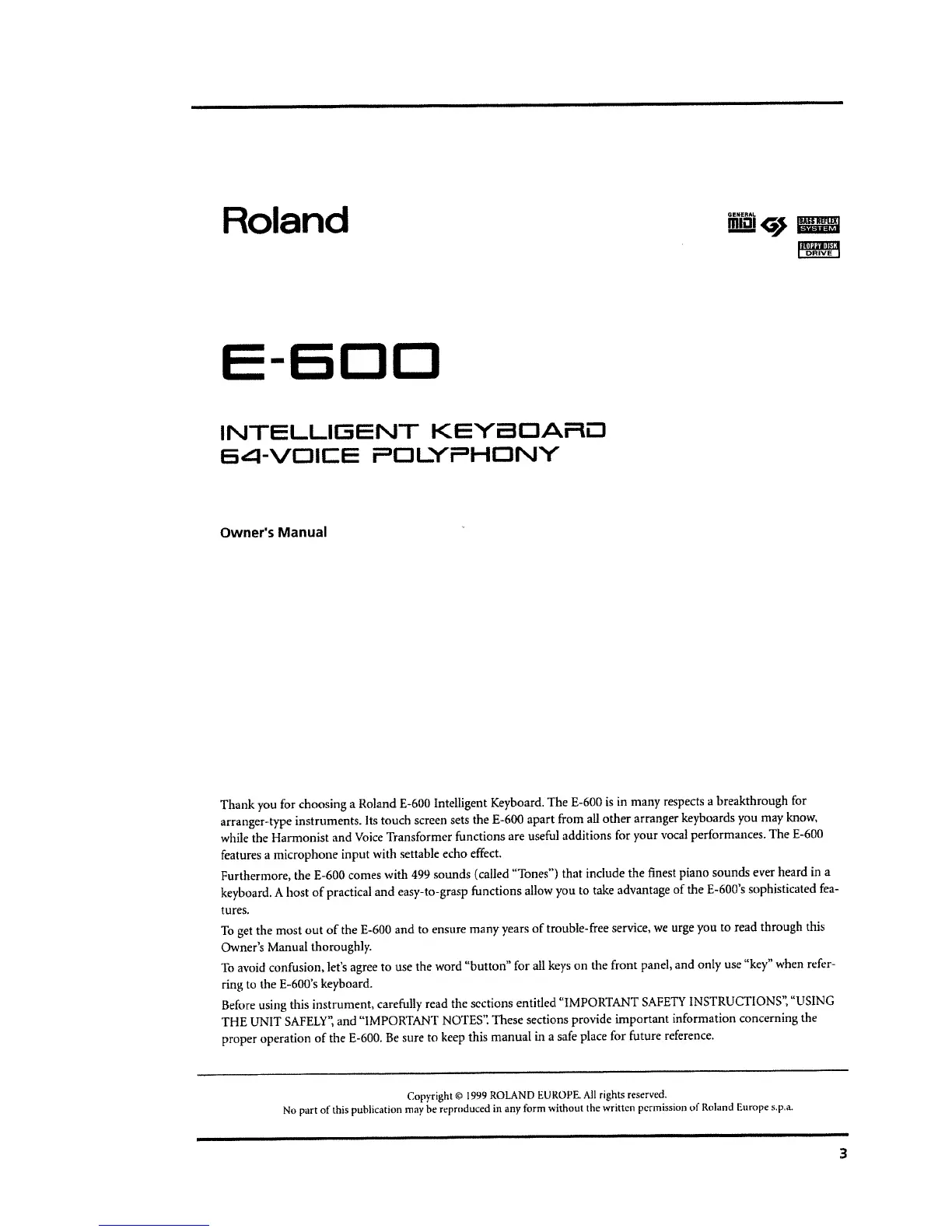 Roland E-600 - Owners Manual Introduction