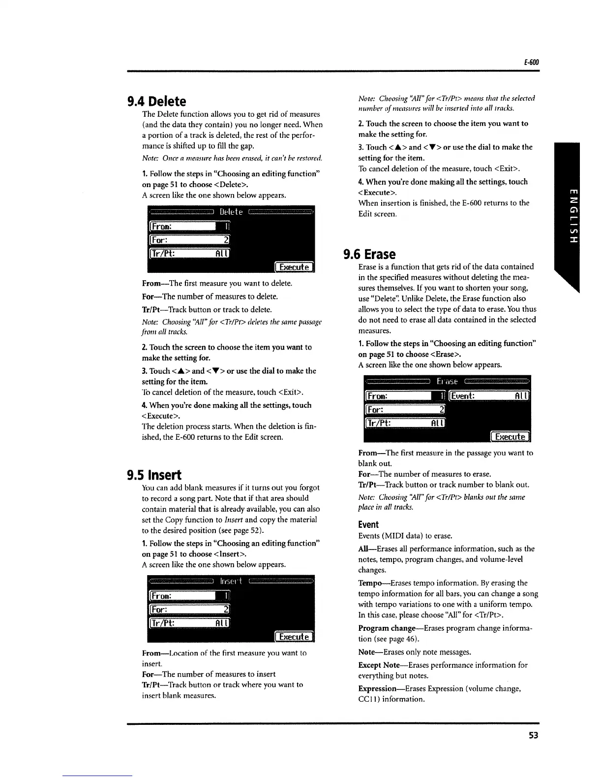 Roland E-600 - Song Editing Operations; Deleting, Inserting, and Erasing Data