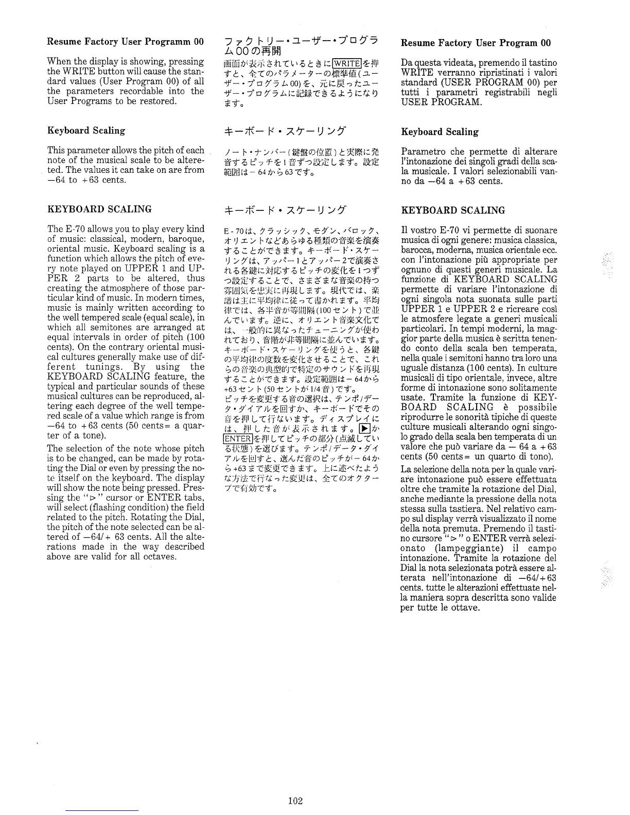 Roland E-70 - Keyboard Scaling Explained; Resume Factory Program 00
