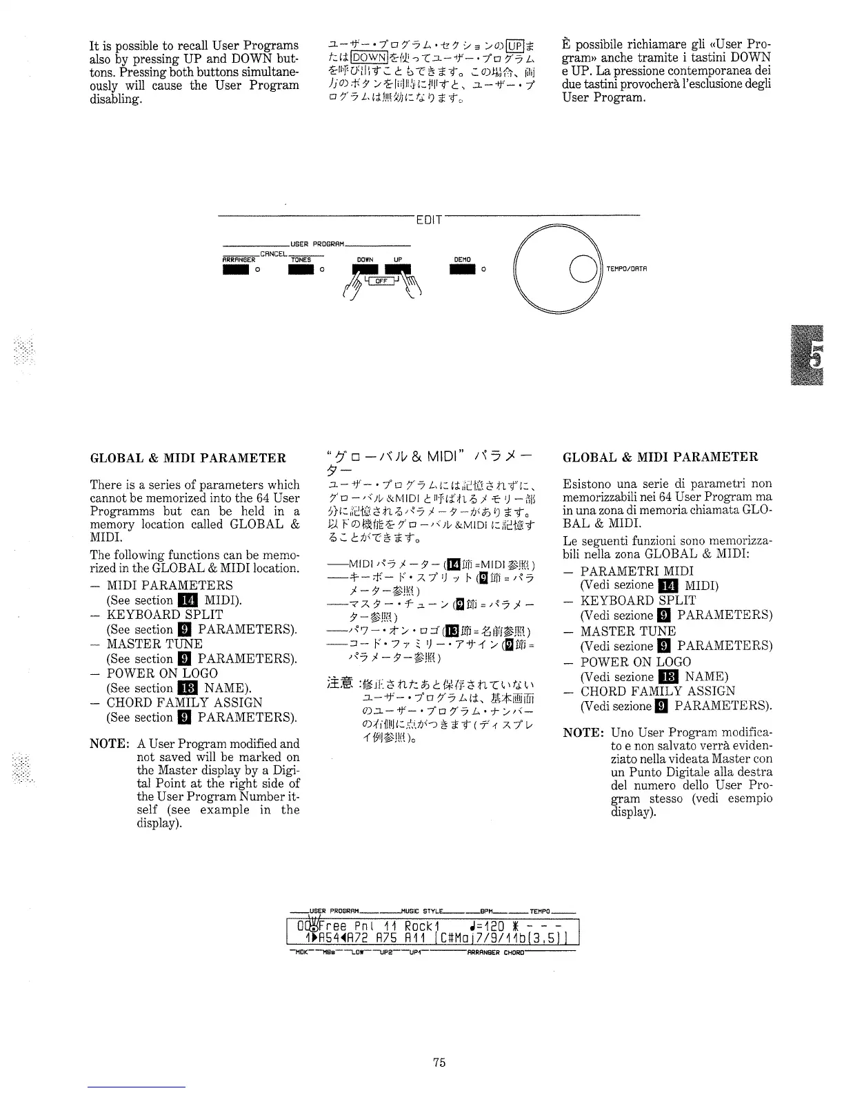 Roland E-70 - Global and MIDI Parameters; MIDI Parameter Settings