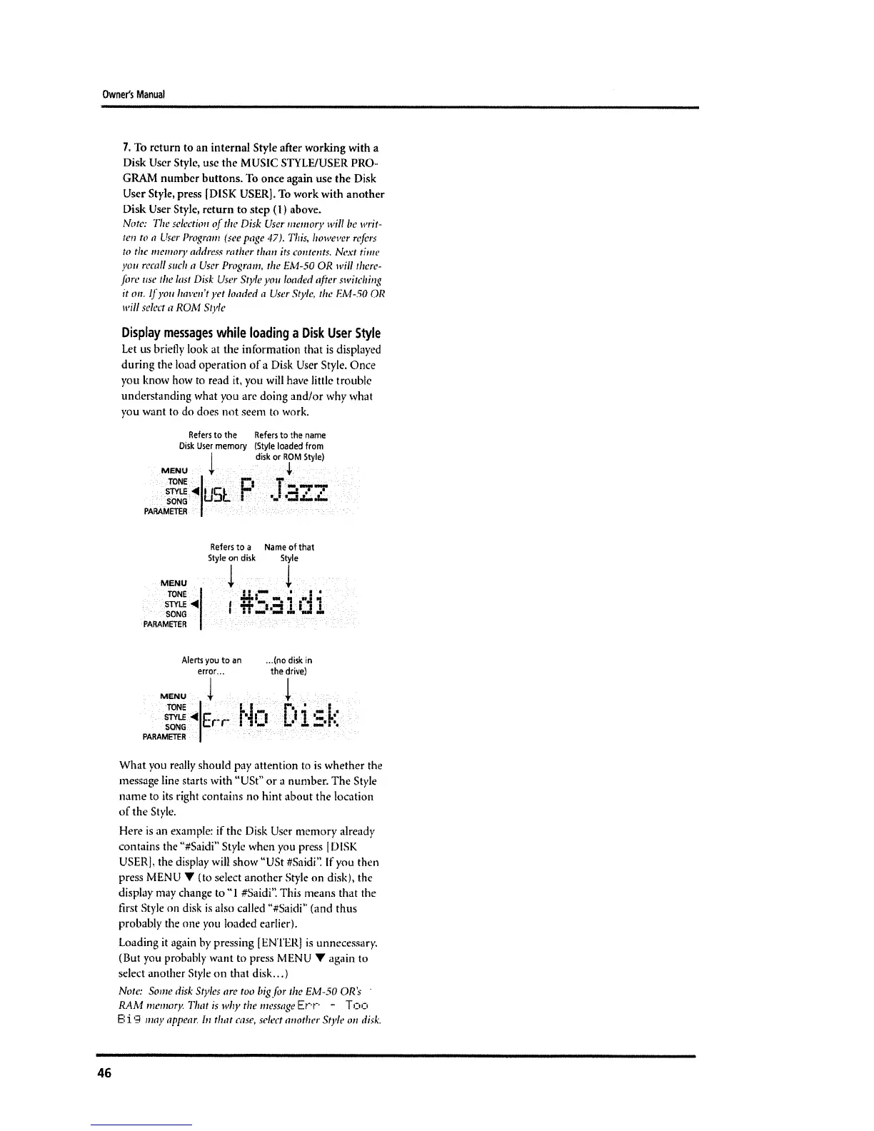 Roland EM-50 OR - Disk User Style Loading Information; Interpreting Disk User Style Loading Messages