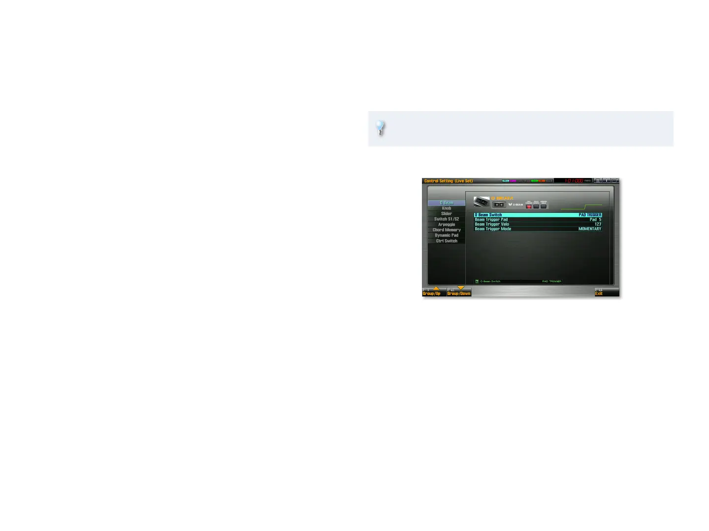 • This sets the triggering of the D Beam to