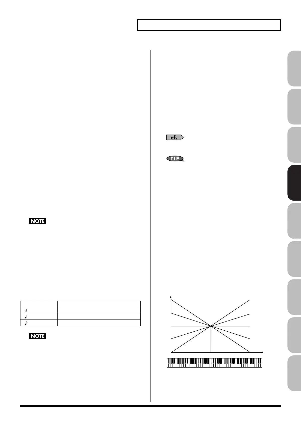 (pitch or cutoff frequency). Positive (+) settings will move the