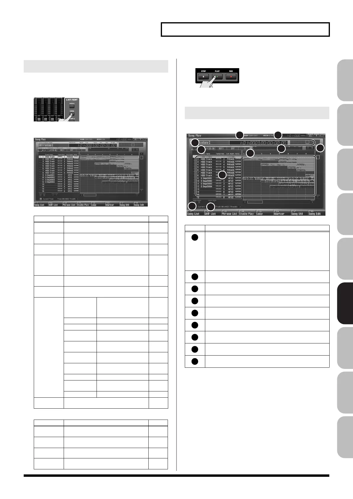 Displays the Song List, where you can load