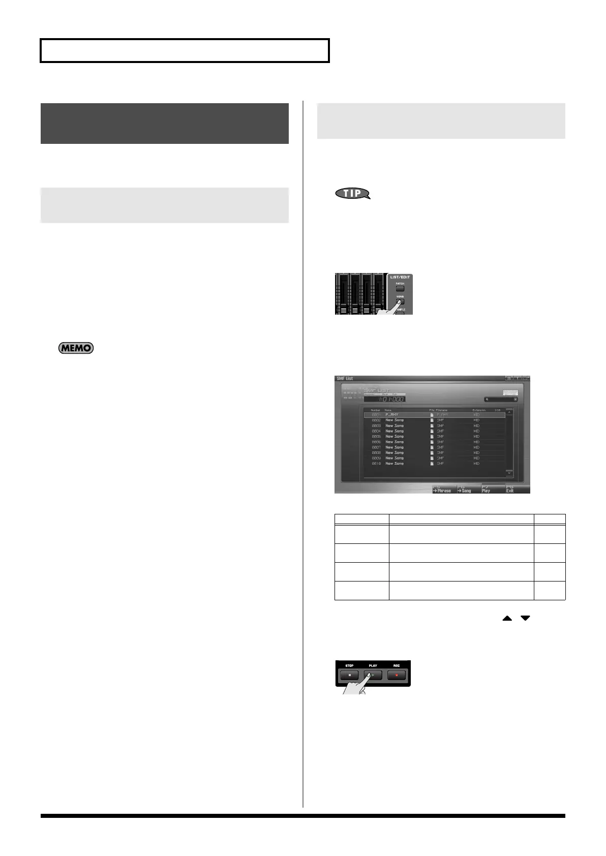 Plays the SMF file selected in the list. p. 212