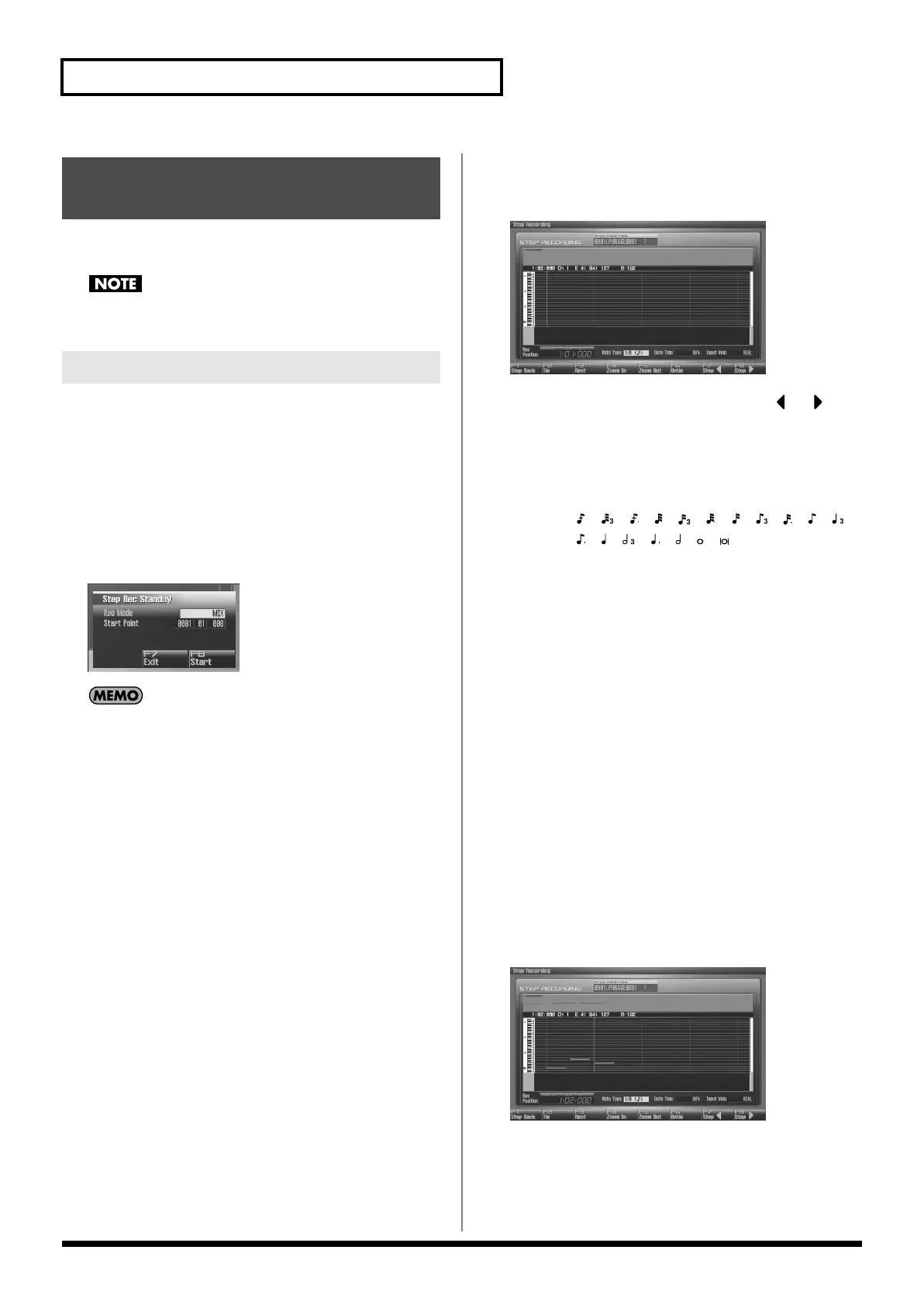 The [REC] indicator will light, and the Step Rec (Note) screen