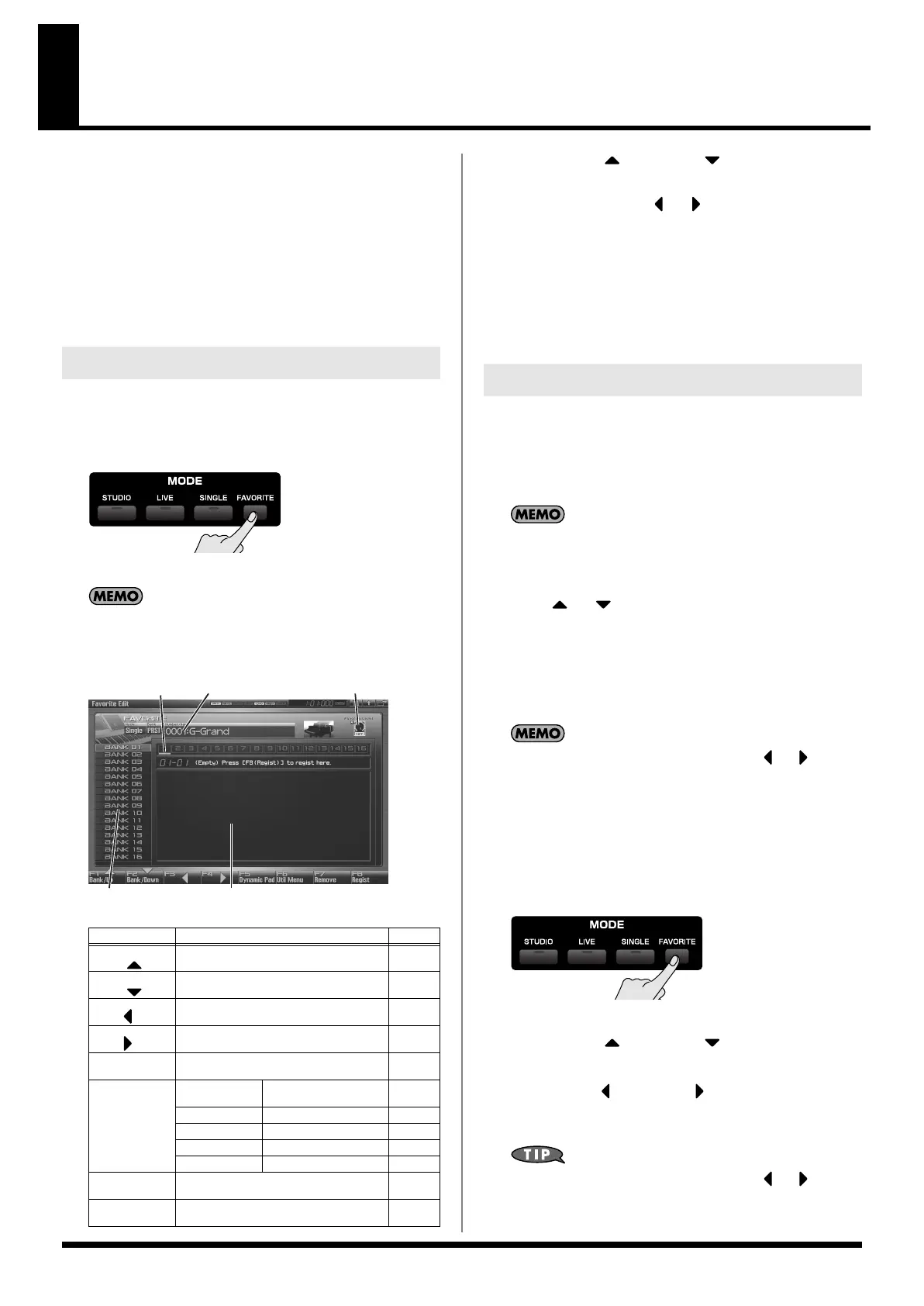 Sets the pads in Favorite mode. p. 54