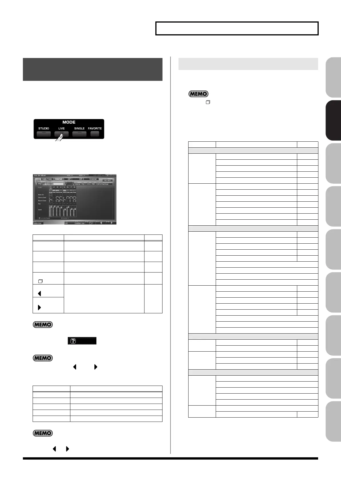 The Live Set Part Mixer screen lets you adjust the level and effect