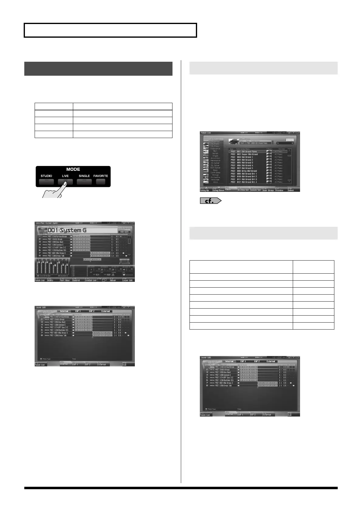 Live Play (Layer/Split) screen, but you can use the F3–F6 keys to