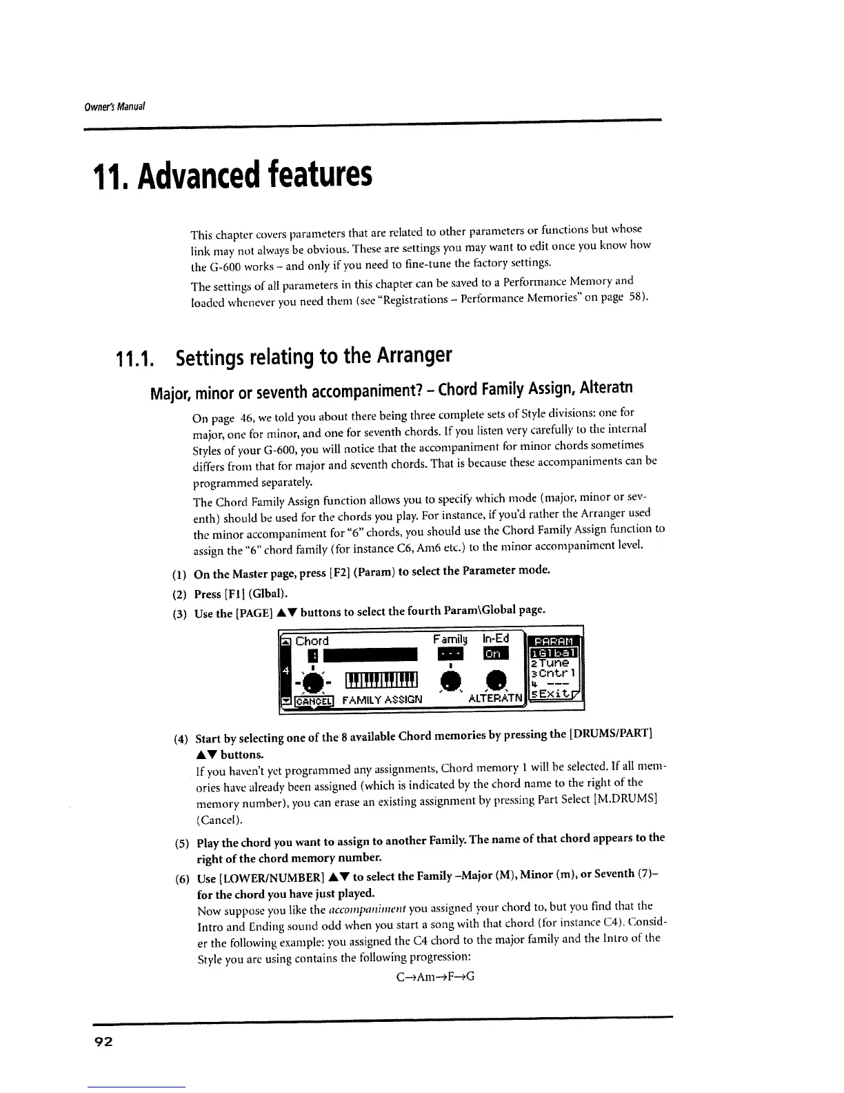 Roland G-600 - Advanced Features; 11.1. Settings Relating to the Arranger