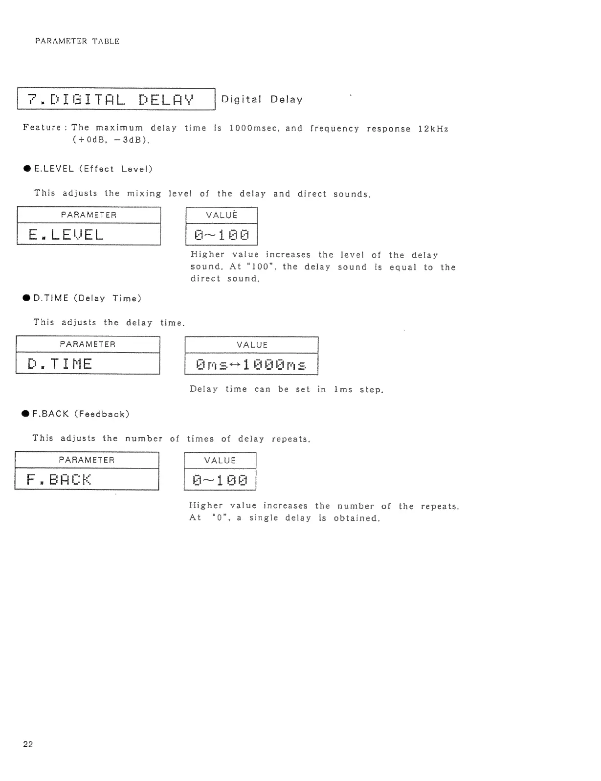 Roland GP-8 - 7. DIGITAL DELAY; Digital Delay Effect Parameters