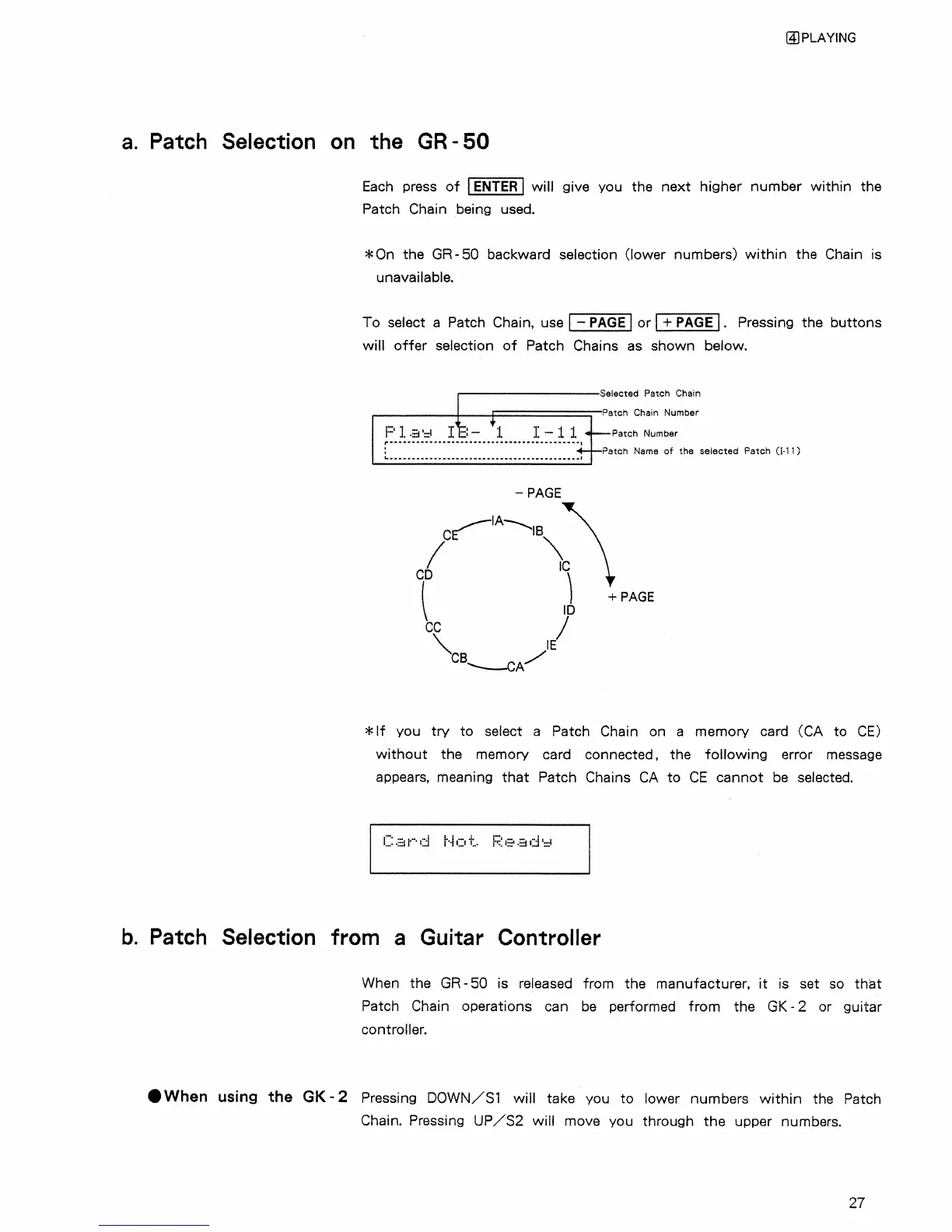 Roland GR-50 - Patch Selection on the GR-50; Patch Selection from a Guitar Controller