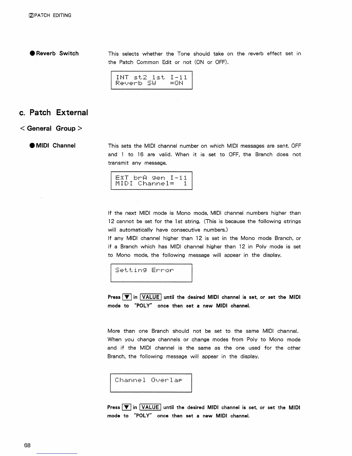 Roland GR-50 - Patch External; General Group; Reverb Switch; MIDI Channel