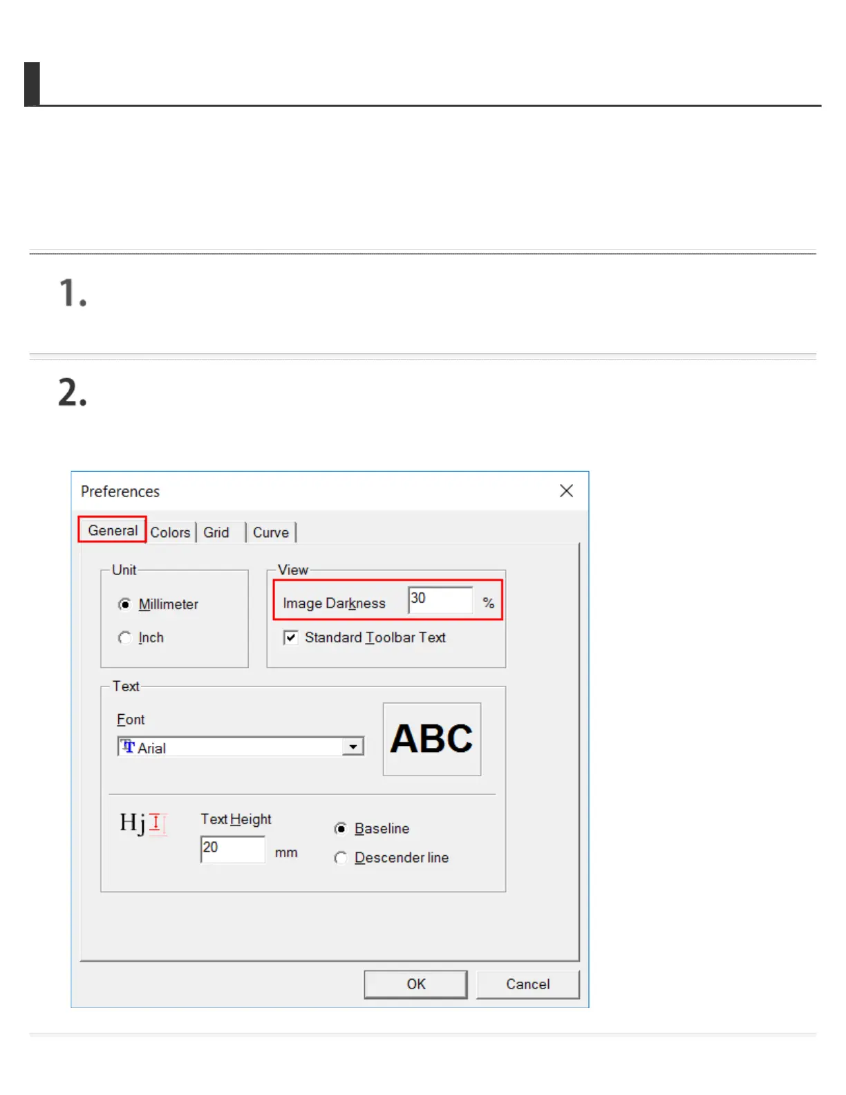 On the General tab, enter a value in the Image Darkness box.