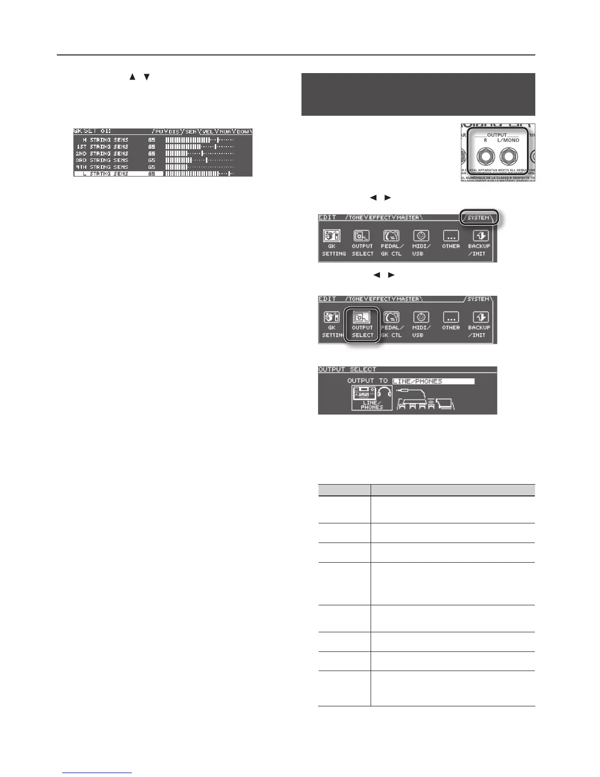 3.  Use the cursor [ ] [ ] buttons to select the OUTPUT SELECT