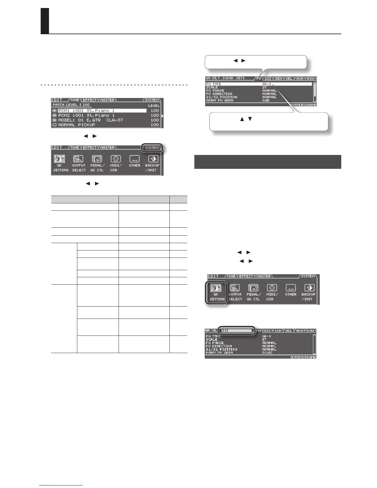 For details on each parameter, refer to “GK SETTING” (p.74).