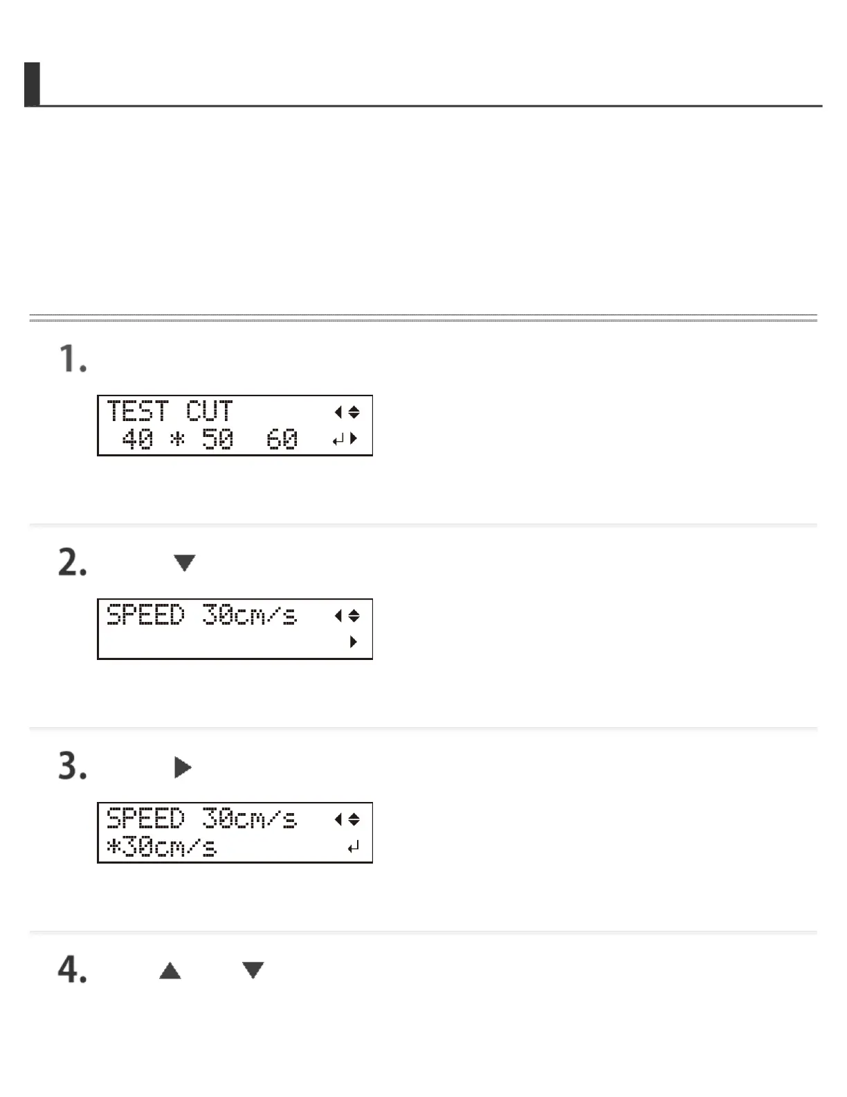 Press [ ] and [ ] to change the cutting speed.