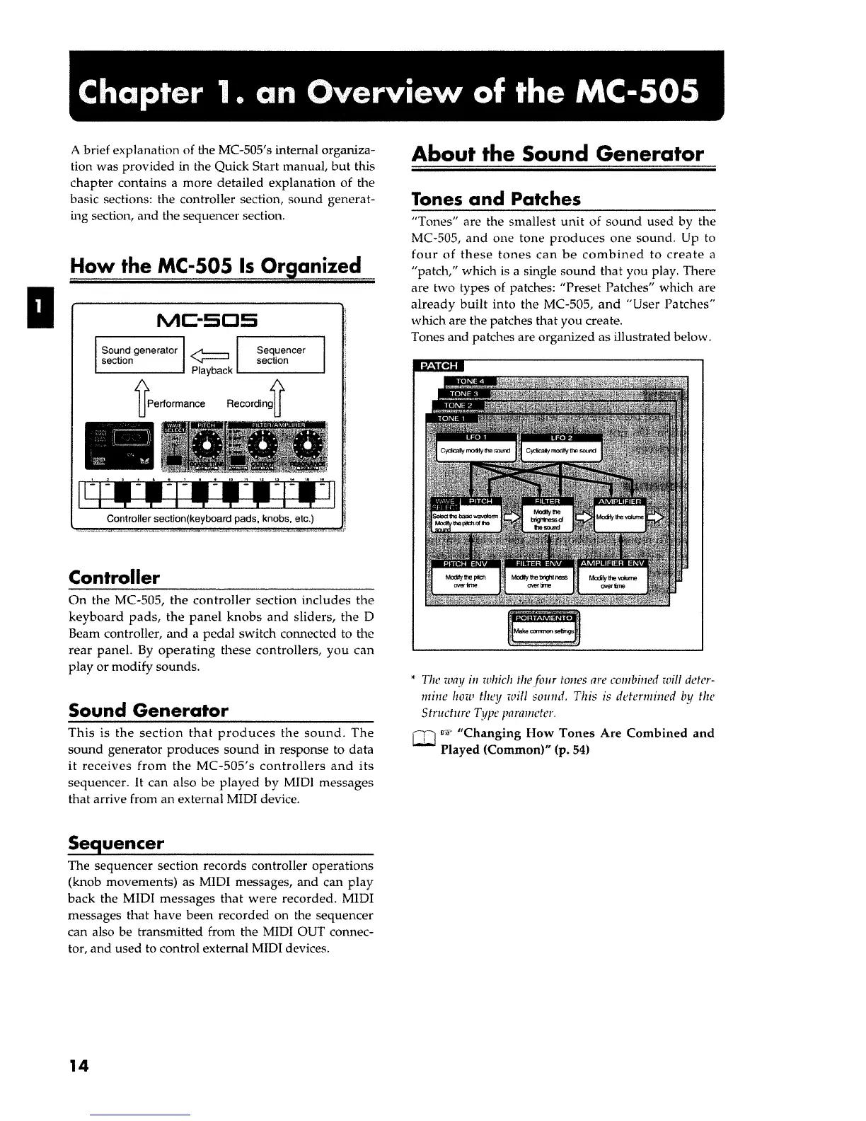 Roland Groovebox MC-505 - Overview of the MC-505; How the MC-505 Is Organized; About the Sound Generator; Tones and Patches