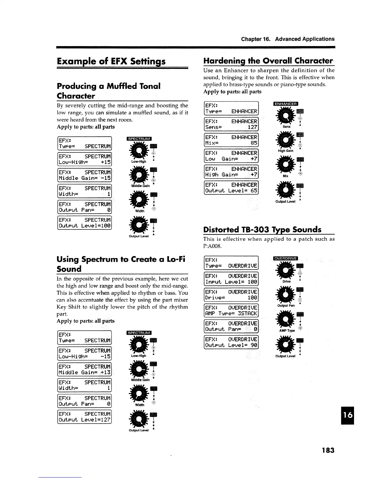 Roland Groovebox MC-505 - Example of EFX Settings; Producing a Muffled Tonal Character; Using Spectrum to Create a Lo-Fi Sound; Hardening the Overall Character