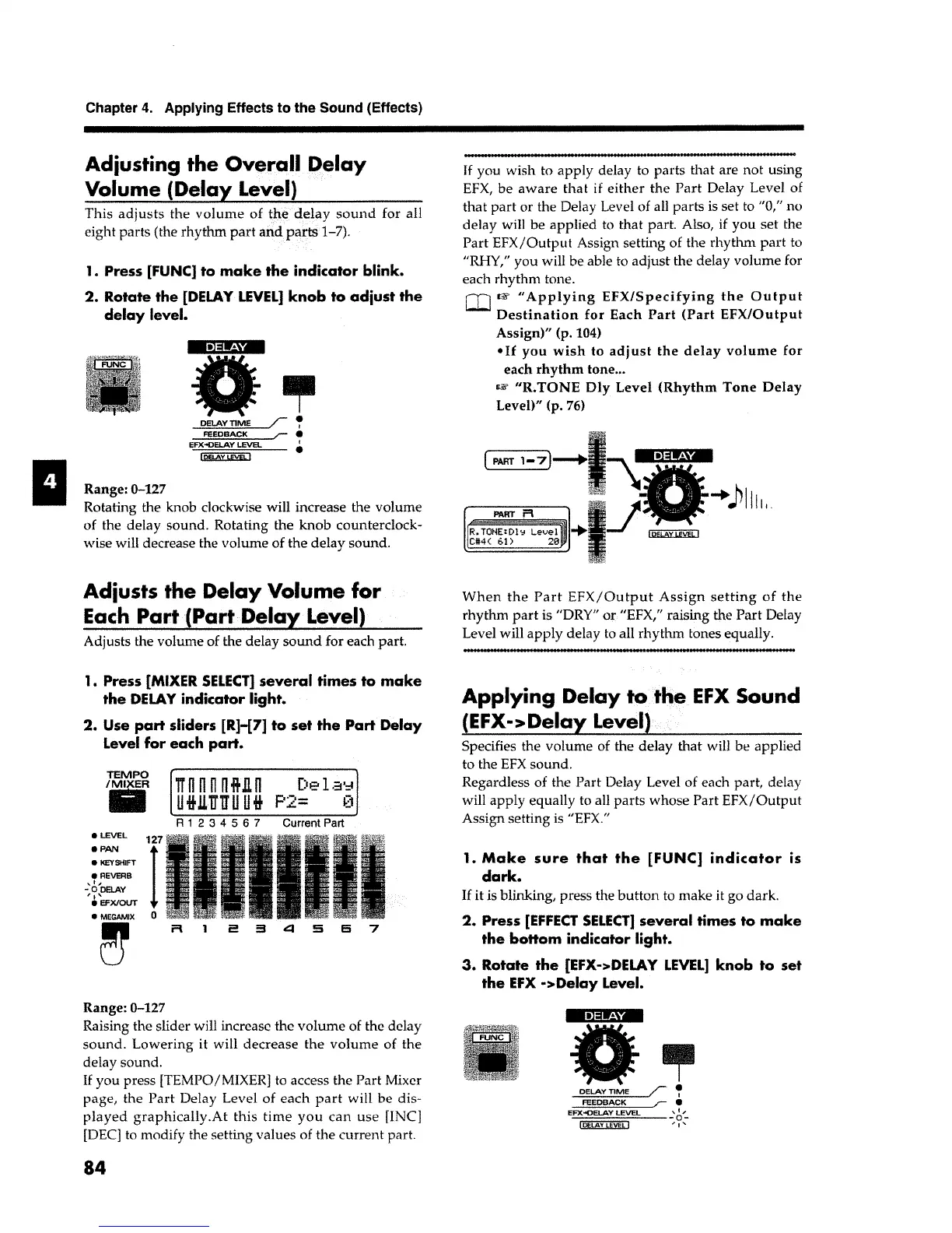 Roland Groovebox MC-505 - Adjusting the Overall Delay Volume; Adjusts the Delay Volume for each Part; Applying Delay to the EFX Sound