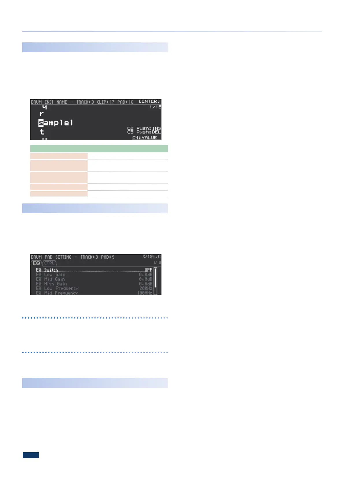 For details, refer to Drum Kit Tone Parameters (Drum), “PAD EQ” (p.