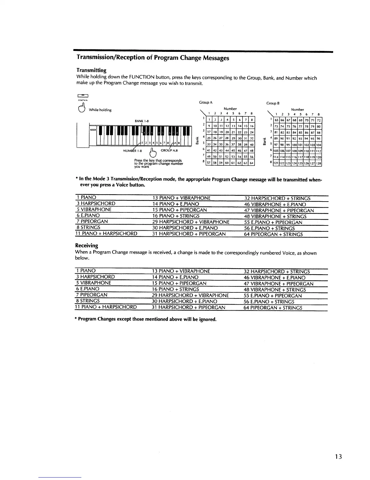 Roland HP-135 - Program Change Message Handling; Transmitting and Receiving Program Changes