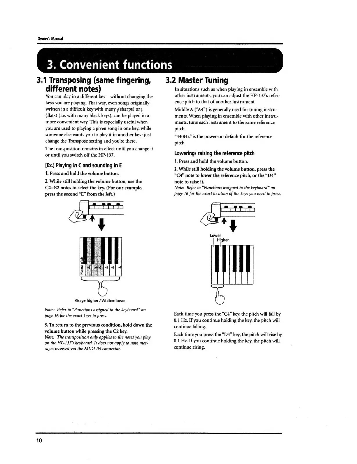 Roland HP 137 - Convenient Functions; Transposing (same Fingering, Different Notes); Master Tuning