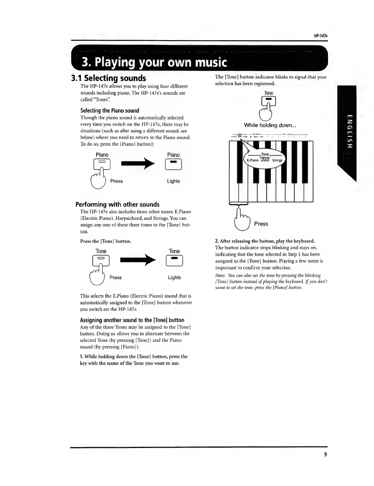 Roland HP 147 e - Sound Selection and Tones; Selecting the Piano Sound; Using and Assigning Other Tones