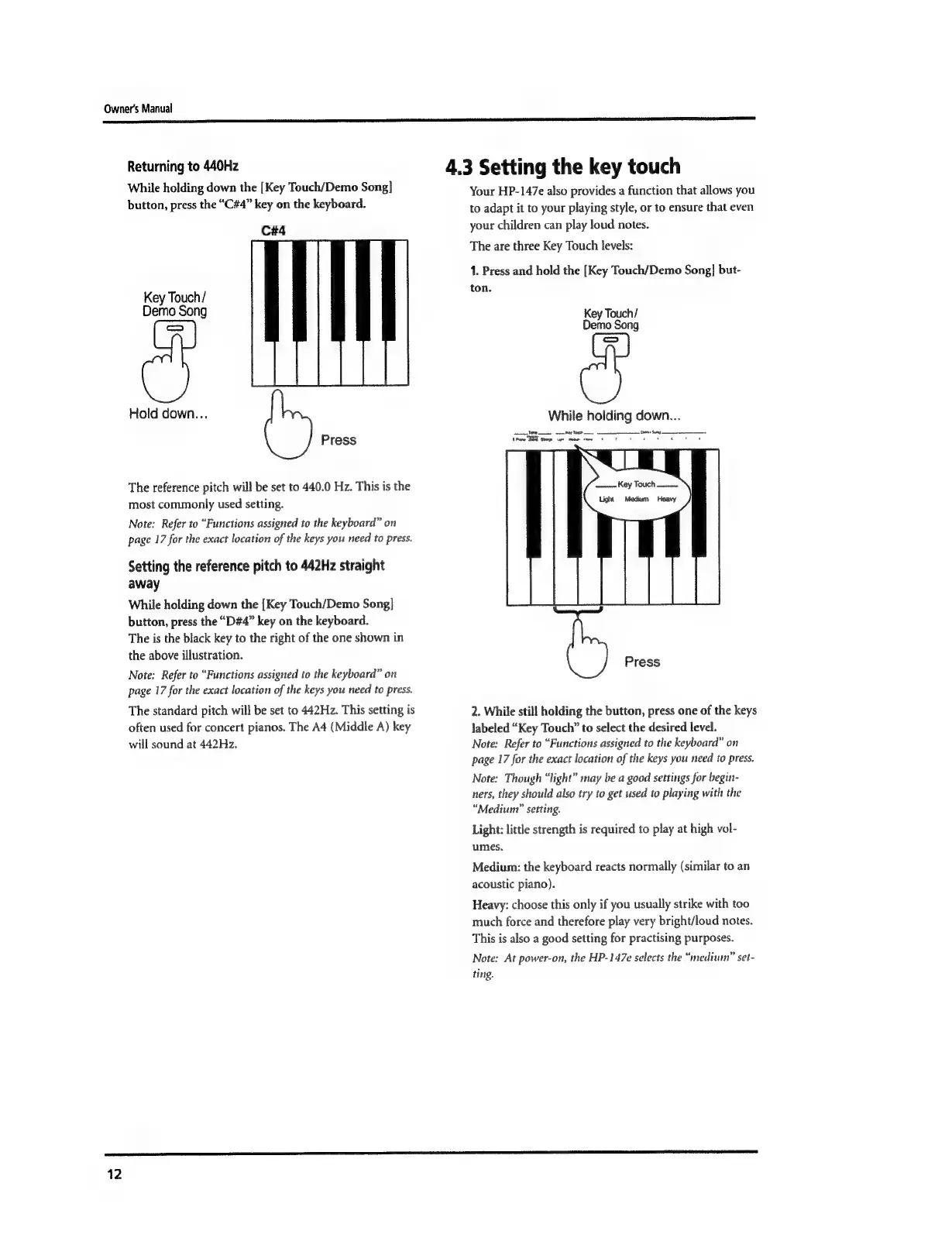Roland HP 147 e - Keyboard and Pitch Settings; Key Touch Sensitivity