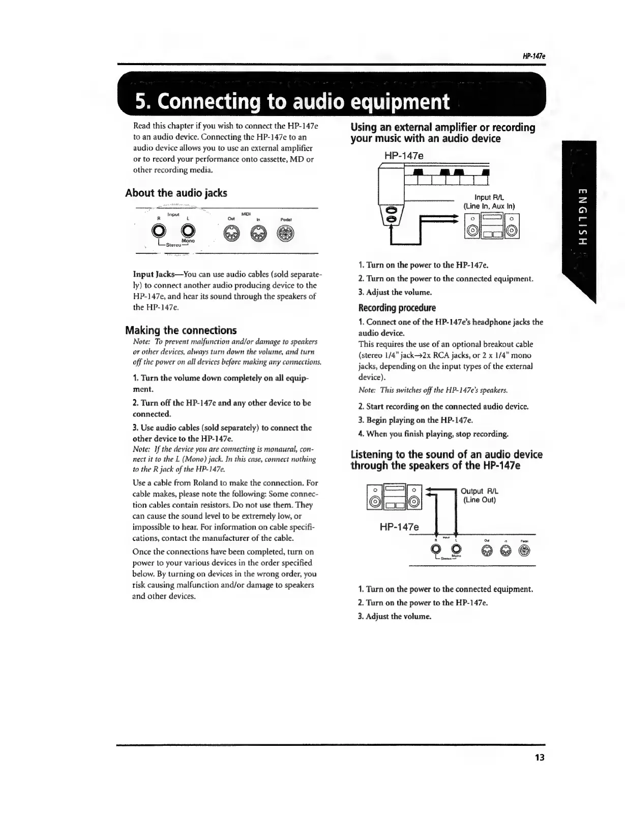 Roland HP 147 e - Audio Equipment Connectivity; Connecting for Recording and Playback